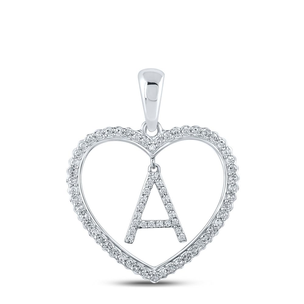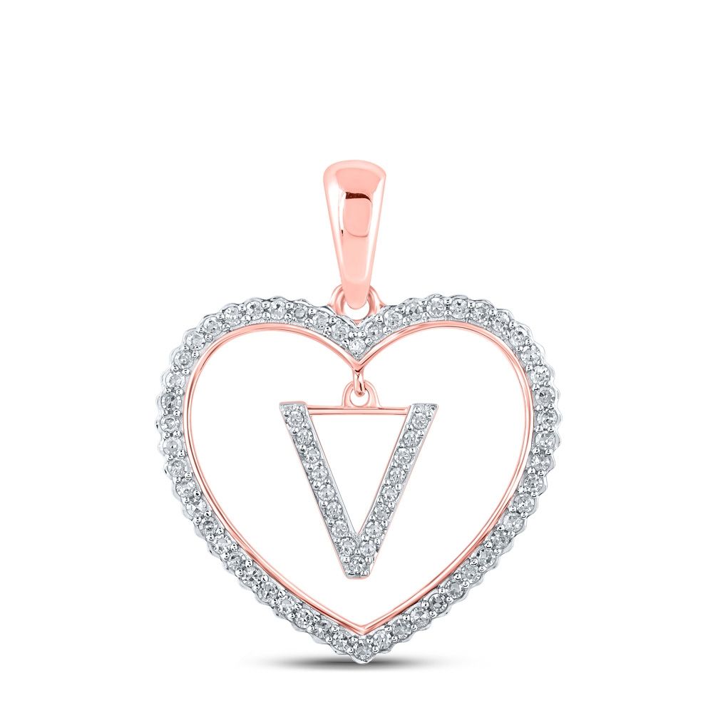 10k Gold Round 1/4 ct Diamond Heart Initial Pendant
