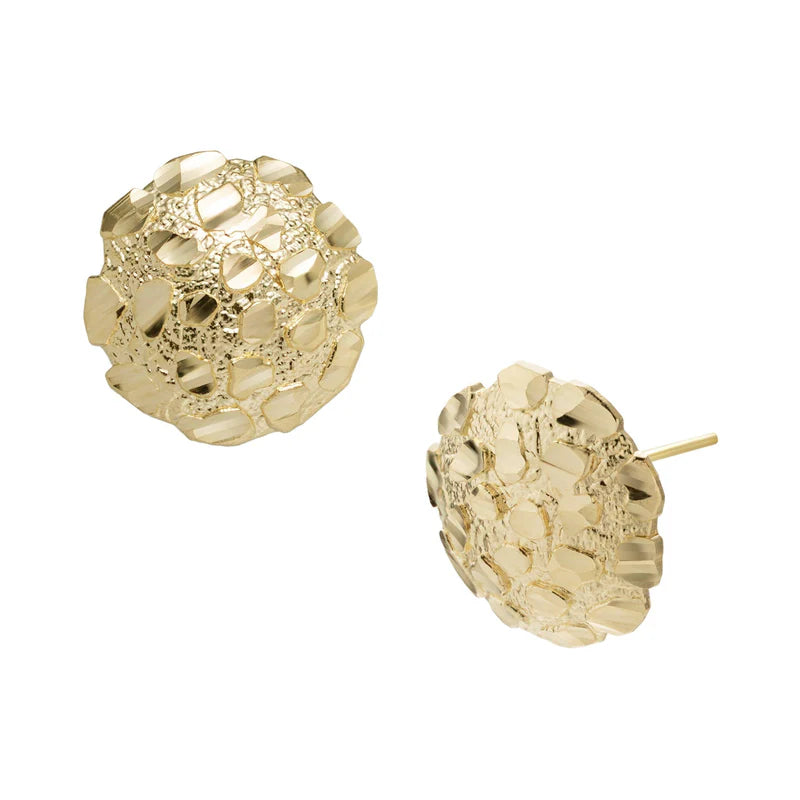 10k Gold Medium Round Nugget Stud Earrings