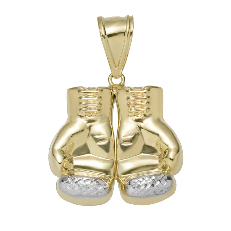 10k Two-Tone Gold Double Boxing Glove Pendant