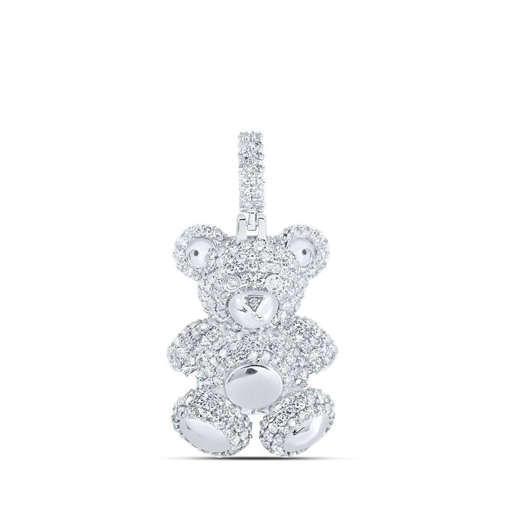 10k White Gold 1.5 ct Diamond Teddy Bear Pendant