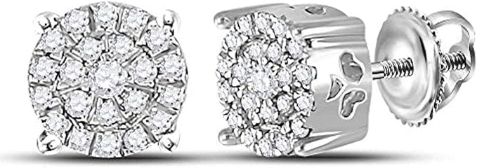 10k White Gold 1/5 ct Round Diamond Cluster Earrings