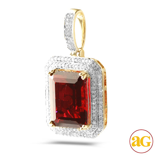 10KY 0.50CTW DIAMOND 2-ROW PENDANT WITH 7.00CT SYN