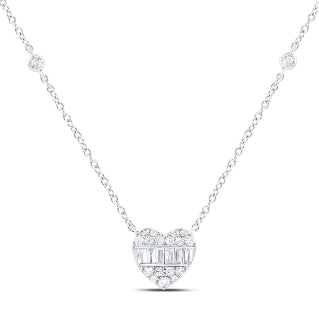 10k Gold 1/4 ct Baguette Diamond Heart Pendant Necklace