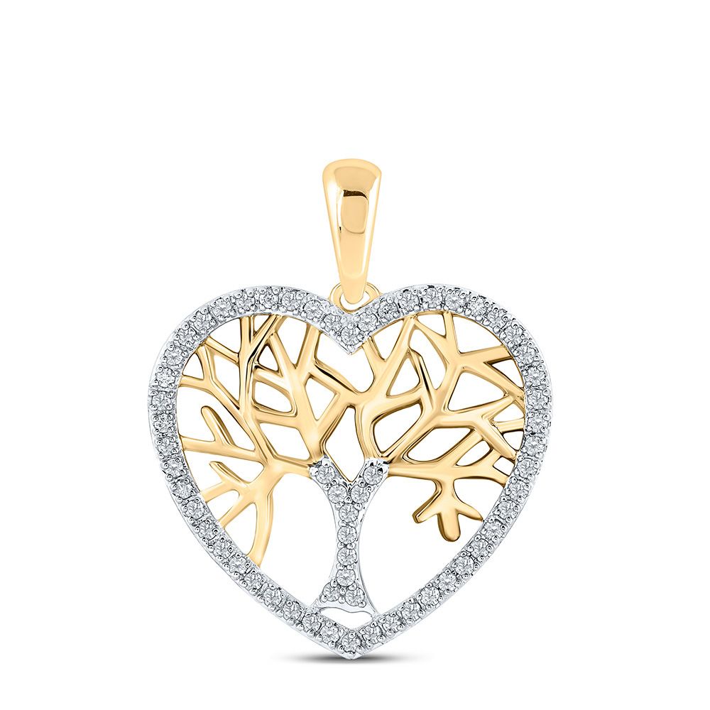 10k Gold 1/4 ct Diamond Tree Of Life Heart Pendant
