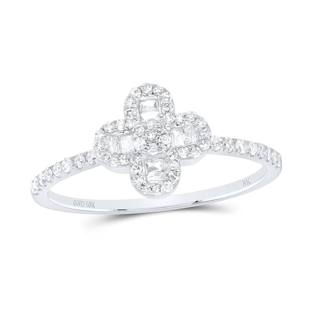 10k Gold 1/3 ct Baguette Diamond Clover Ring