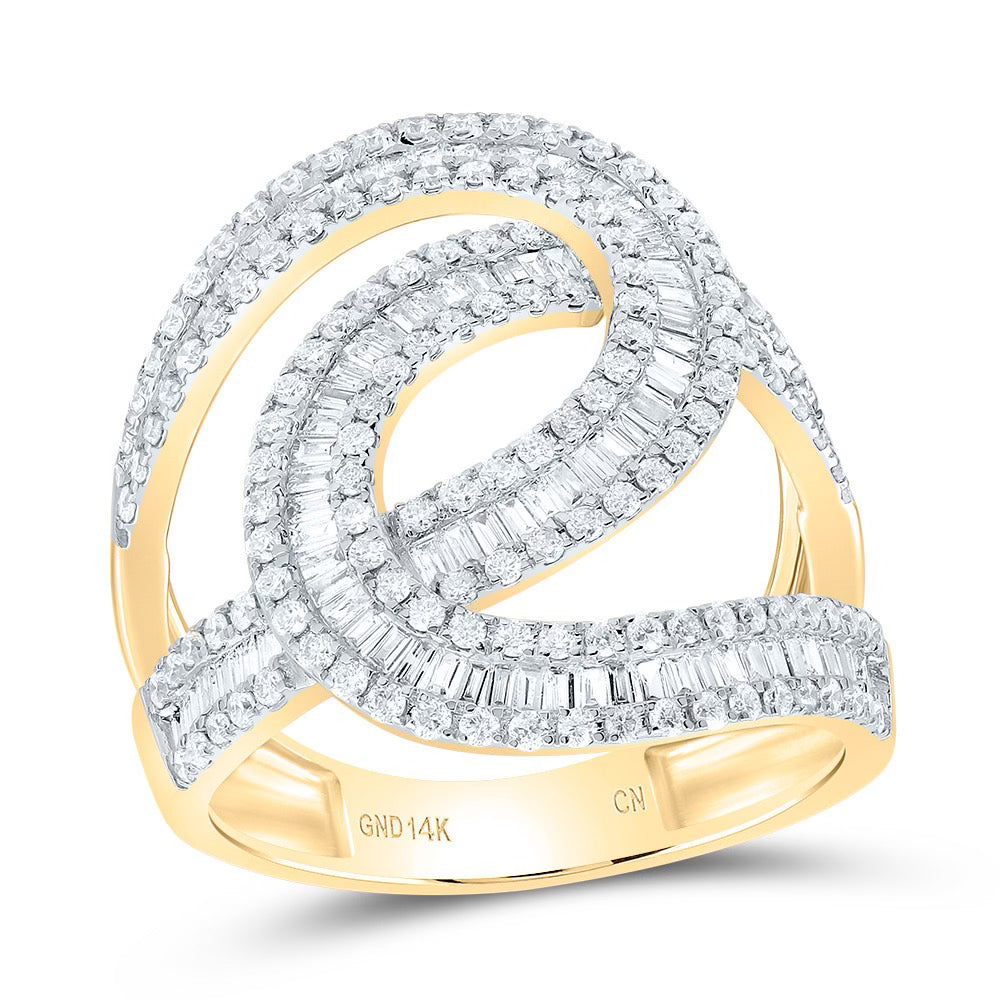 10k Gold Baguette 1.5 ct Diamond Cuff Ring