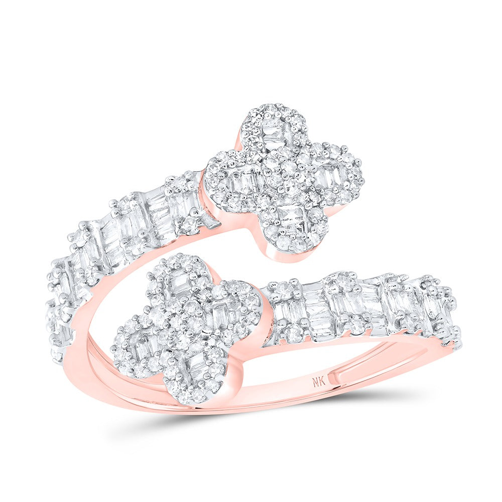 10k Gold 3/4 ct Baguette Diamond Clover Cuff Ring