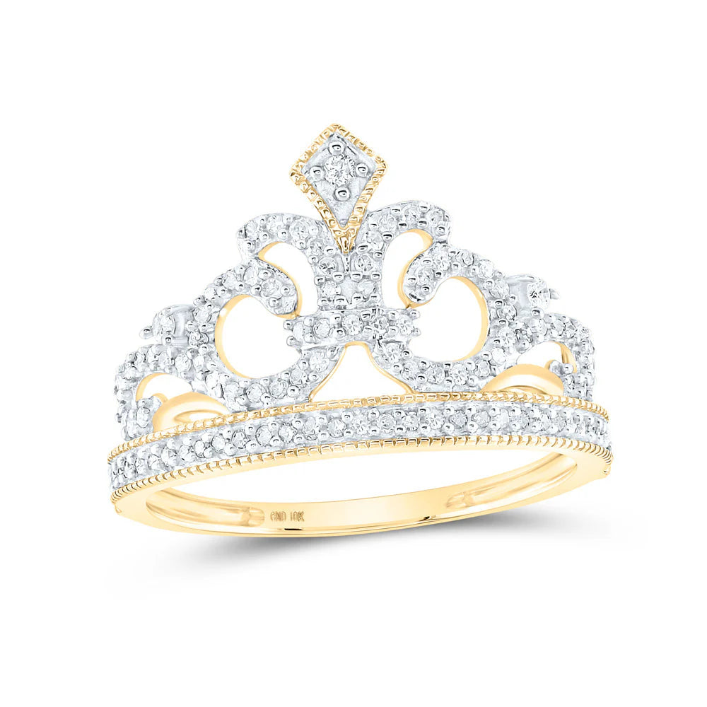 10k Gold 1/5 ct Diamond Fleur Crown Tiara Ring