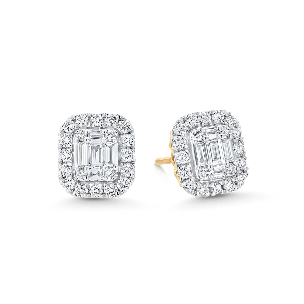 10k Gold 1/2 ct Baguette Diamond Cluster Earrings