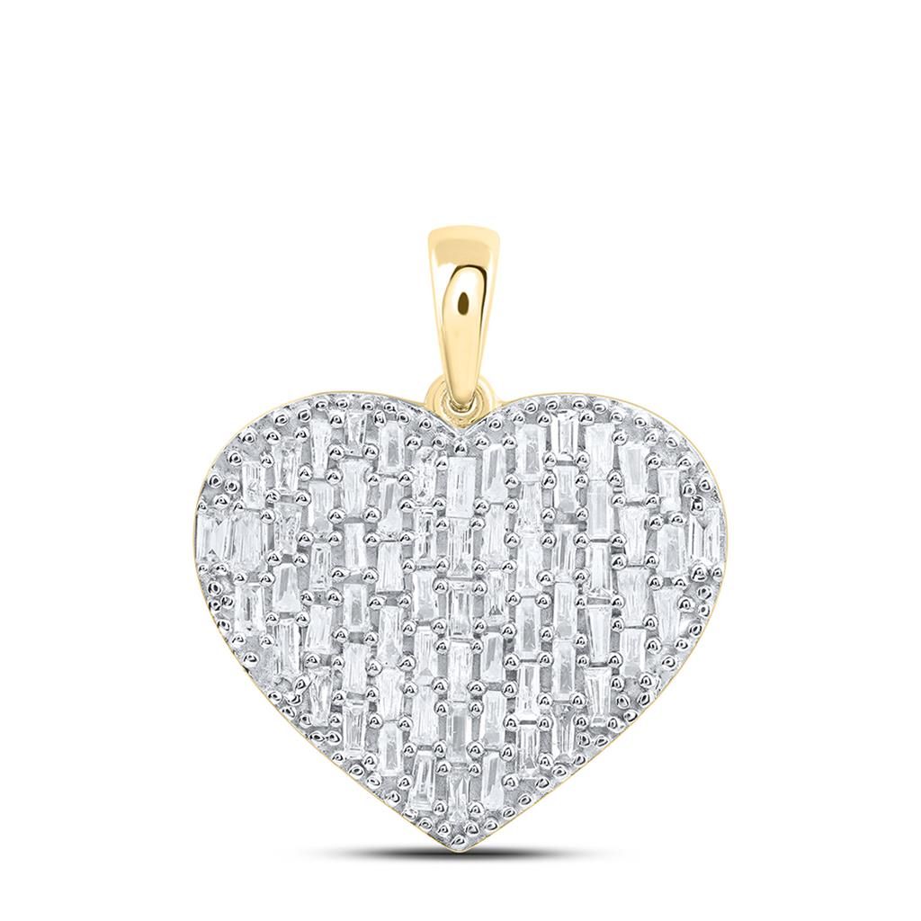 10k Gold 1 ct Baguette Diamond Heart Pendant