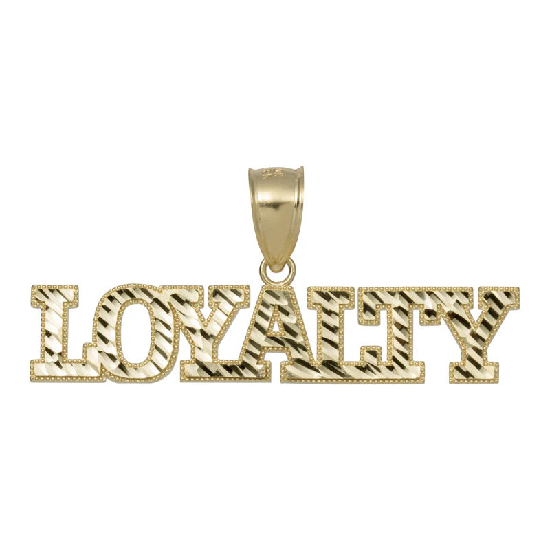Celebrate the timeless virtue of loyalty with the 10k Gold Loyalty Script Diamond Cut Pendant. This exquisite piece features the word "Loyalty" elegantly scripted in 10k...Regular price $600.00 USDSale price $600.00 USD Regular priceUnit price / per -