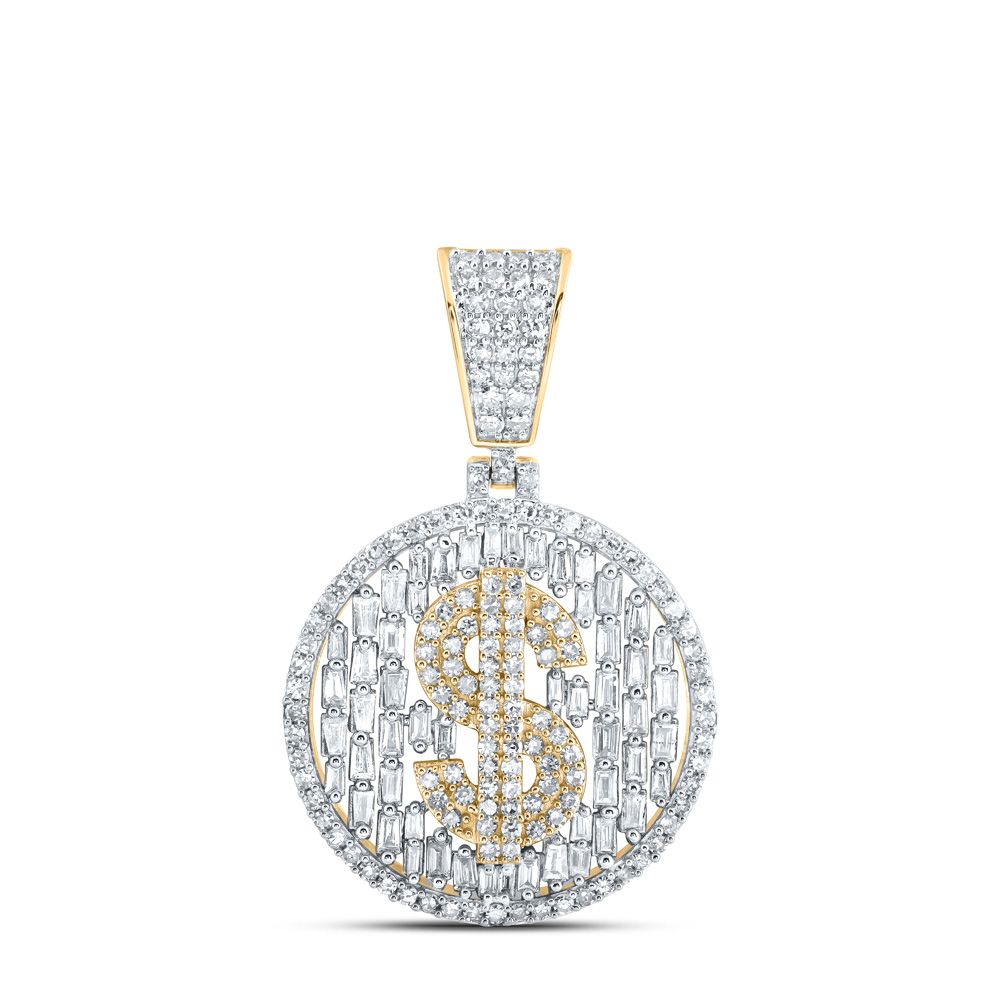 10K Gold 1.5 ct Diamond Dollar Sign Circle Pendant