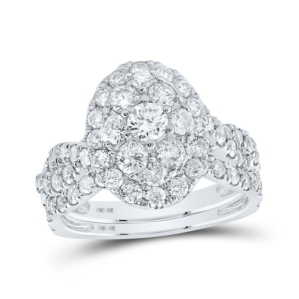 10k Gold 2 ct Diamond Halo Bridal Wedding Ring Set