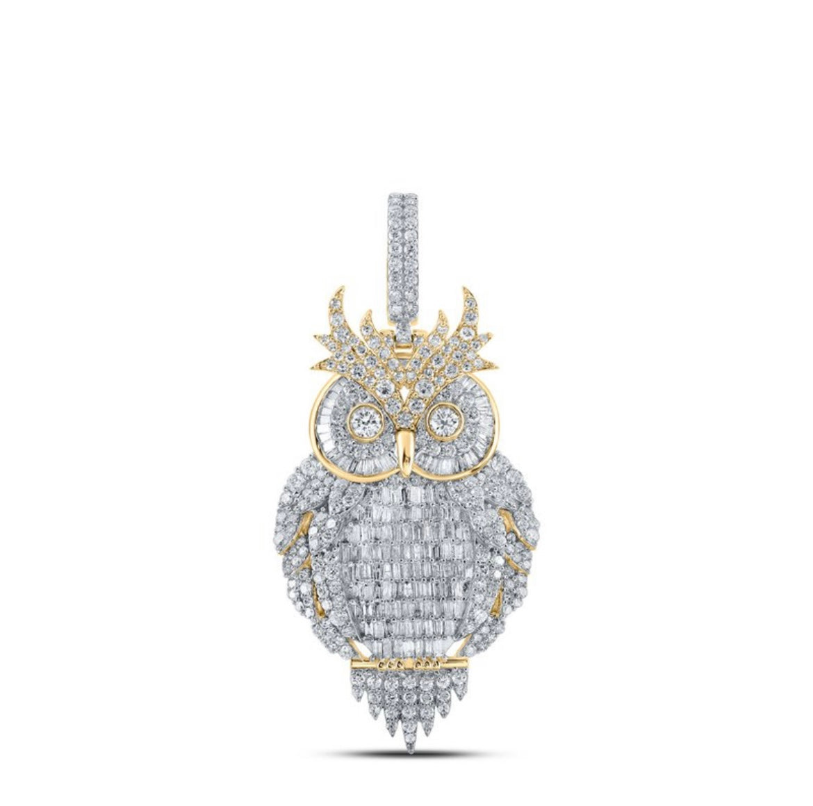 10k Gold 4 ct Baguette Diamond Owl Pendant