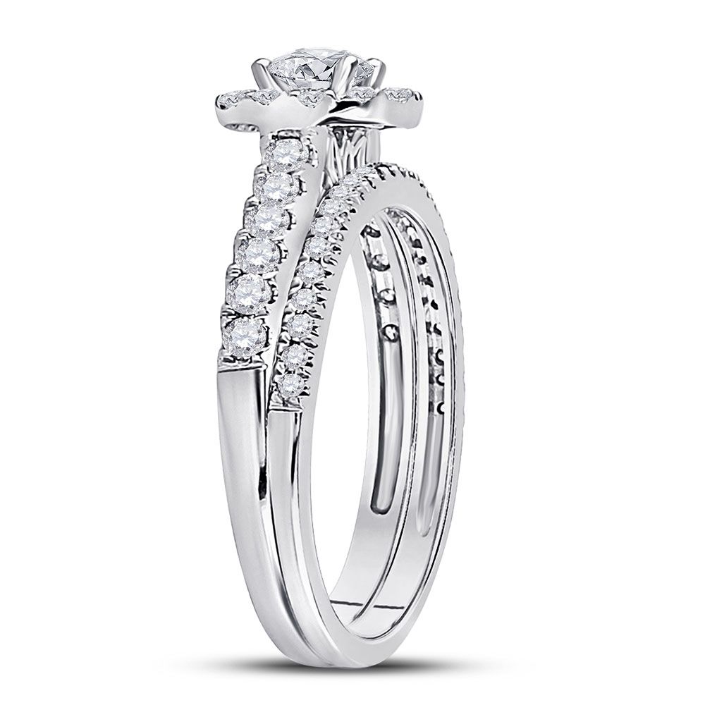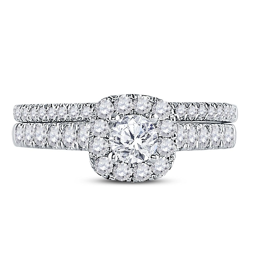 10k White Gold Round 1 ct Diamond Bridal Wedding Ring Set