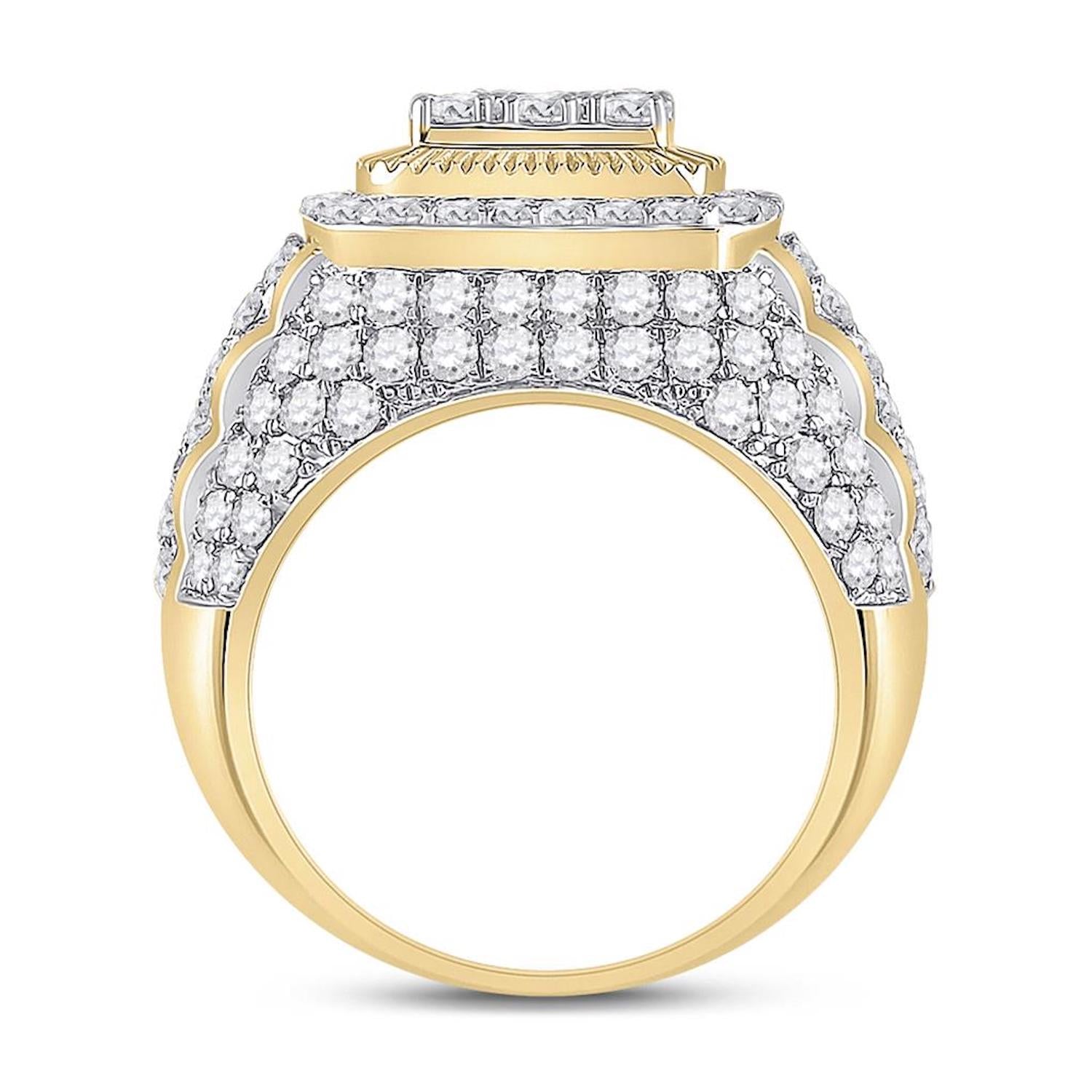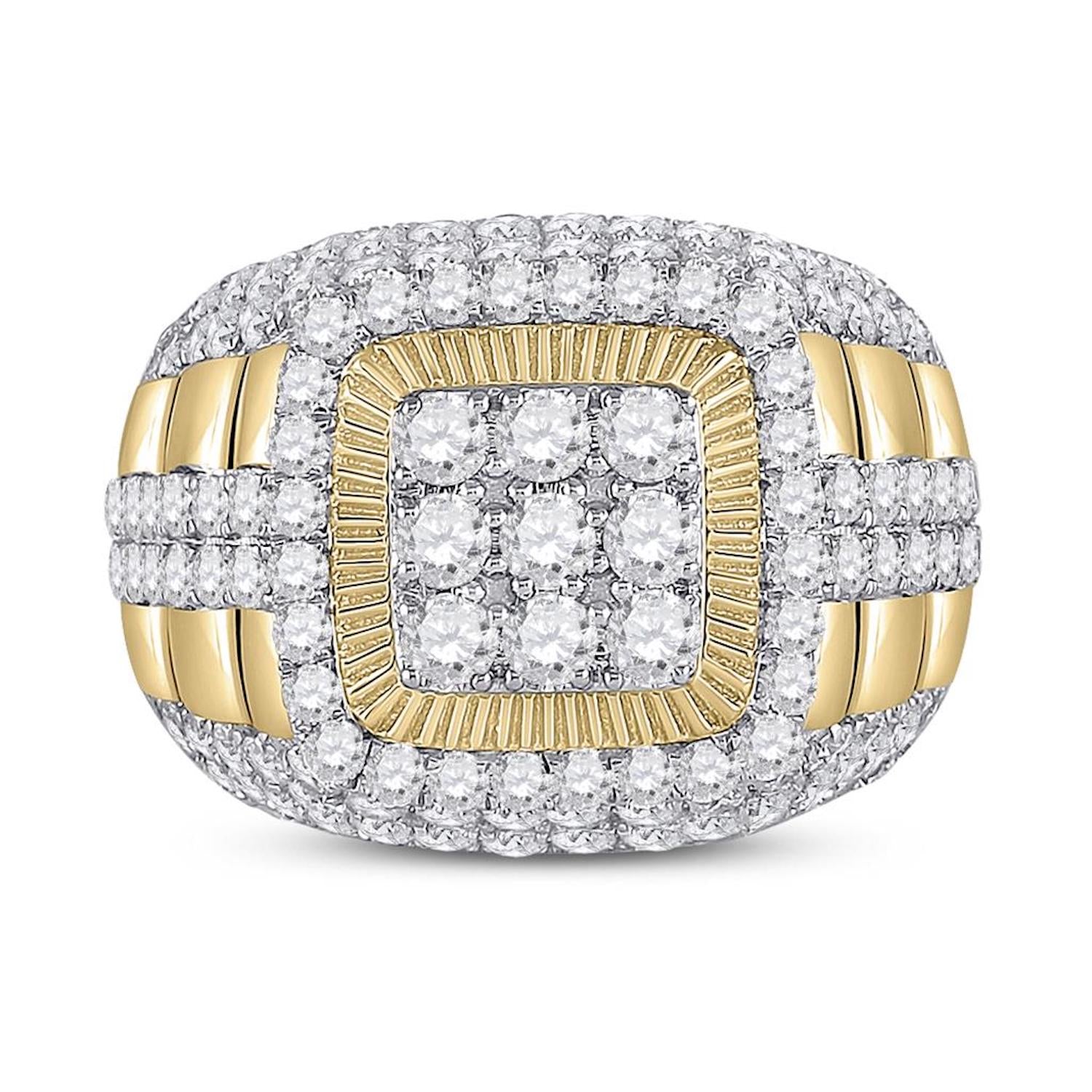 14k Gold 5 ct Round Diamond Ribbed Square Cluster Ring